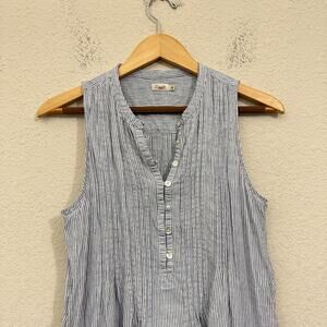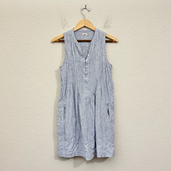 FAHERTY Isha Mini Dress Womens Sz S Blue Pinstriped Sleeveless Linen Y2K Preppy W11943