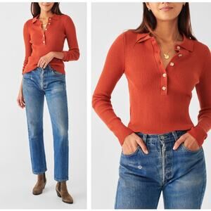 FAHERTY Miki Ribbed Polo Sweater Burnt Brick Orange Sz XS $168 {3Y17}