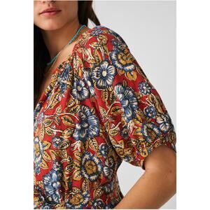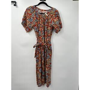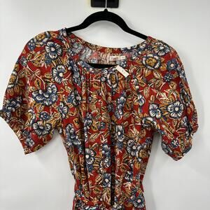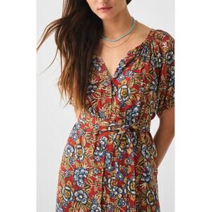 FAHERTY NWT Carmel LInen Blend Red Floral Tie Waist Dress // XS