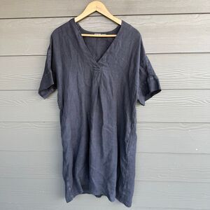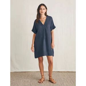 It's all about barefoot glamour in our effortless pullover dress made for the most leisurely days. The luxe basketweave texture of this premium linen gives it an elevated drape that looks perfect with a spritz in hand. We recommend sizing down if you prefer a more fitted look. We recommend sizing down if you prefer a less relaxed fit. Fit: Relaxed fit Detail: On seam pockets and rolled sleeves. Material: 100% Linen
