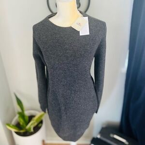 FAHERTY Stowe Cashmere Sweater Dress, 100% Cashmere, Gray, Large, (12/14), NWT