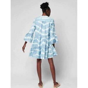 FAHERTY Vida Blue Tie Dye Tiered A Line Oversized Dress Size Small $278