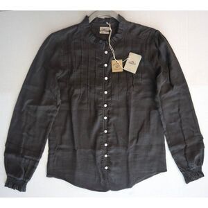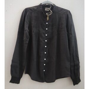 FAHERTY WTC0001 Women's Sz S Faded Black Willa Button Front Peasant Blouse