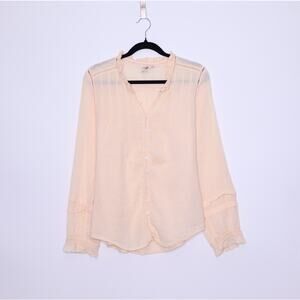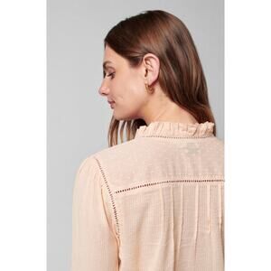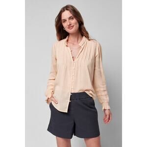 FAHERTY Willa Pintuck Top Vanilla Cream Textured Embroidered Blouse Women's XL