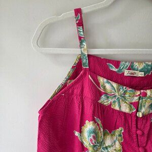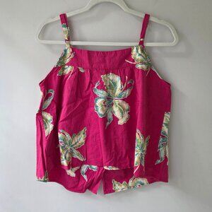 FAHERTY Women's Textured Tank Top | Small | Floral Pink Buttons Adjustable Strap