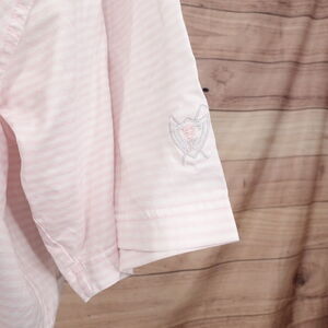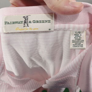 FAIRWAY & GREENE SHORT SLEEVE PINK WHITE STRIPED POLO SHIRT MENS SIZE L LARGE