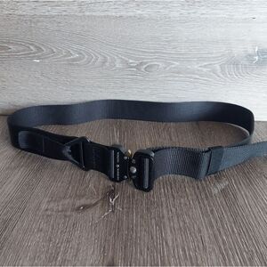 This tactical belt features a military belt buckle made of heavy-duty metal.