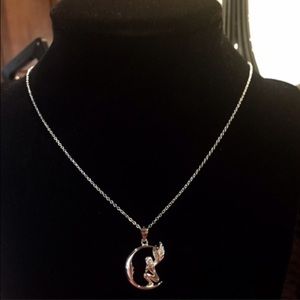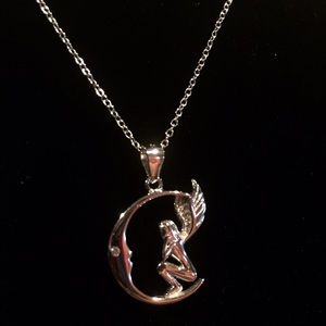 🌸FAIRY & MOON PENDANT W/ CHAIN STERLING SILVER
