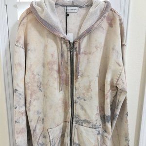 FAITH CONNEXION Mens Laced Bleached Hooded Sweat Jacket Sz M Grey