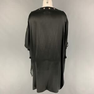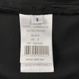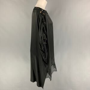 FAITH CONNEXION dress top comes in a black silk featuring a oversized fit, grommet details, tie up design, and a lace trim.Very Good Pre-Owned Condition.