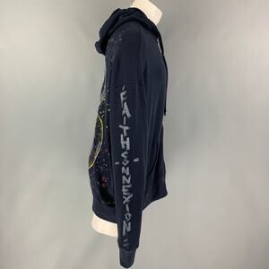 FAITH CONNEXION Size S Navy Multi-Color Painted Cotton Hooded Sweatshirt