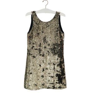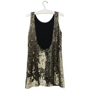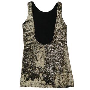 Faith Connexion gold sequin shift dress. Low scoop back. Lined. 100% polyester. Size Small. Garment measurements-- bust: 35" hips: 36" front length from top of shoulder at neckline, measured straight down: 32"