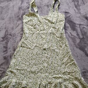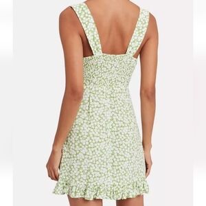 FAITHEULL THE BRAND Lou Lou Mini Dress Green Floral Flirty Button Up Smocked 4