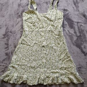 FAITHEULL THE BRAND Lou Lou Mini Dress Green Floral Flirty Button Up Smocked 4 EUC