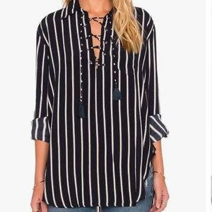 Faithful The Brand Stevie Tibery stripe navy tunic shirt. With lace up front. 100% rayon. Very gently used condition. Slightly oversized see measurements. Comment below with any questions