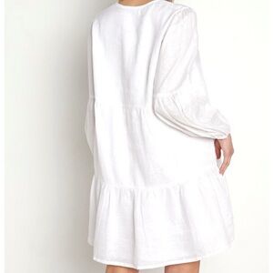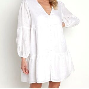 FAITHFUL The BRAND Dija Mini Dress 100% Linen White LongSleeve Sz 4 S Lagenlook