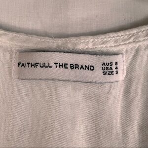 EUC. This is a stylish FAITHFUL The BRAND Dija Mini Dress in a size 4 (S) featuring a solid white color and made of 100% linen material. The dress has a V-neckline with puff sleeves and a pullover closure, making it perfect for various occasions such as travel, weddings, parties, or casual wear. Designed with a beach theme in mind, this short dress is lined and lightweight, ideal for the summer and spring seasons.