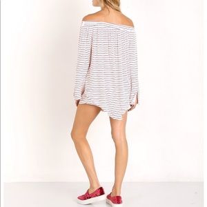 FAITHFULL *Dream* off shoulder tunic top in red Muse stripe 6
