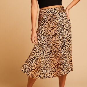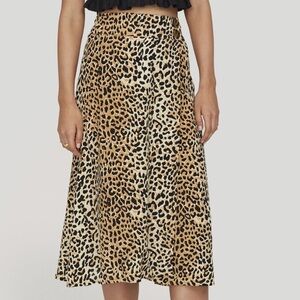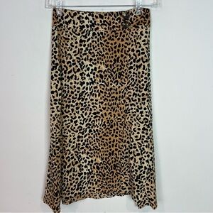 FAITHFULL THE BRAND ANTHROPOLOGIE BLACK BROWN LEOPARD WRAP SKIRT WOMENS SZ 2