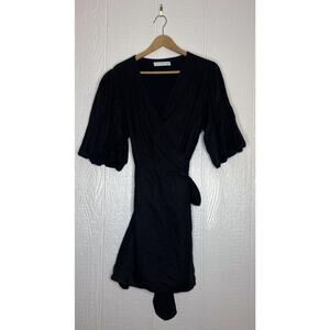 FAITHFULL THE BRAND 'Godiva' Black Linen Wrap Dress US 10