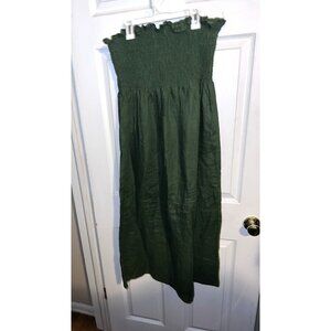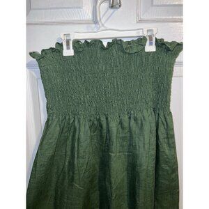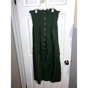 FAITHFULL THE BRAND Green Linen Smocked Sleeveless Midi Dress Button Down Sz 10