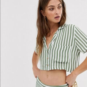 This FAITHFULL THE BRAND shirt is a striped delight in a fabric that's oh-so-light. Play off the cropped silhouette by contrasting this pair with high-rise bottoms.