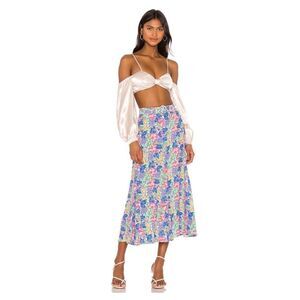 FAITHFULL THE BRAND Valensole Midi Skirt Blue Pink White Size X-Small