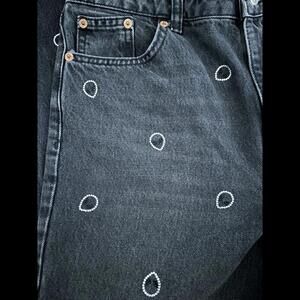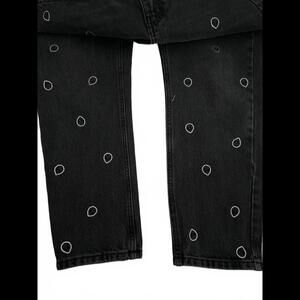 Elevate your wardrobe with these fashionable black denim jeans featuring unique embroidered detailing. Perfect for casual outings or dressed-up occasions, these jeans offer a contemporary twist. Key features include: