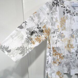 FALL FLORAL GRAY TAN WHITE BLOUSE XL PETITE