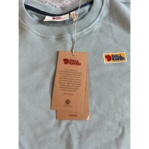 Vardag means weekday in Swedish, and this sweater has everything you’re looking for in an everyday favourite. Timeless design with a round neck, ribbed cuffs and hem and a classic Fjällräven logo on the chest. Made in comfortable organic cotton jersey with a loop-knitted inside, perfect to accompany you both in town and on weekend outings. This Vardag Sweater comes in Misty Green in a size small, and is new with tags!