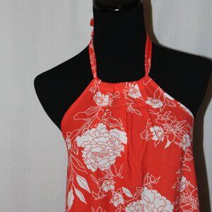 FALL SALE! CHVITY ORANGE WHITE FLORAL TIE HALTER DRESS SMALL NWT's