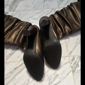 BRONZE SLOUCHY BOOTS ARE A MUST HAVE FOR FALL 2017 OR ANY SLOUCHY BOOTS❣THIS PAIR IS VEGAN BY IMPO STRETCH, ONLY WEAR ON THE SOLES AS SEEN IN PIC4, 3 1/4" HEELS