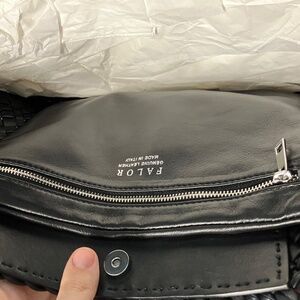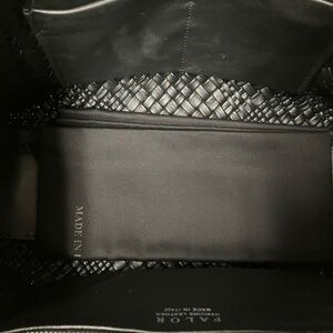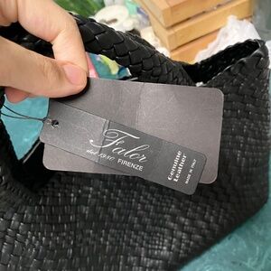 Falor Black Genuine Leather Woven Handbag. 100% Sewn by hand in Italy by Artisans. Two inside pockets and One Zipper pocket. approx 17"w×11"H×6"D The drop is approx 8in