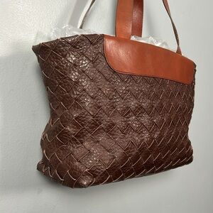 FALOR Firenze Italia Italy Woven Leather Handbag Tote Purse Brown VTG