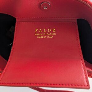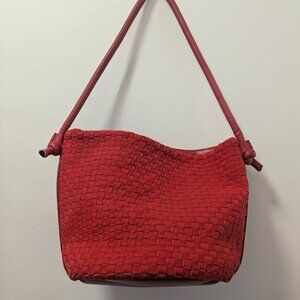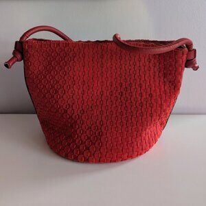 FALOR Woven Leather and Fabric Bucket shoulder Bag in RED
