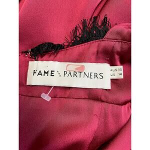 FAME AND PARTNERS Ara Satin Mermaid Gown Dress Lace Trim Burgundy Size 14