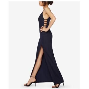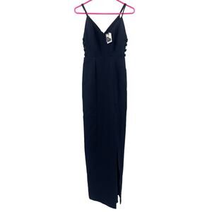 FAME AND PARTNERS Dress Size 0 Maxi Gown Navy Side Slit Buttons Evening NWT Formal, Wedding, Bridesmaid, Classic, Evening, Cocktail, Event