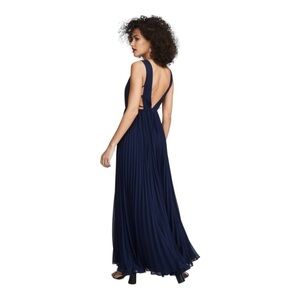 NEW with tags FAME & PARTNERS Navy Blue Allegra Side Cutout V Neck Grecian High Slit Flowy Maxi Gown