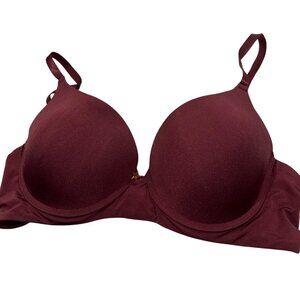 This is for a like new bra. It is Fame brand and it is a size 38C. It is a burgundy wine color. It is underwire and has adjustable straps.