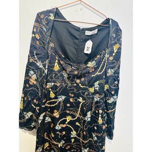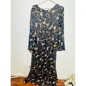 FAME & PARTNERS Black Gold Tassels Chains Print Bell Sleeved Ceramic Gown US 12