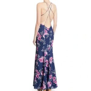 Elegant floral maxi dress featuring a deep V-neck and a stunning pink and blue color palette. Perfect for any occasion, this dress offers a flattering fit and a stylish look.