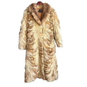 FAMOUS BARR VINTAGE FULL LENGTH Beige REAL FOX FUR COAT size Small EXQUISITE