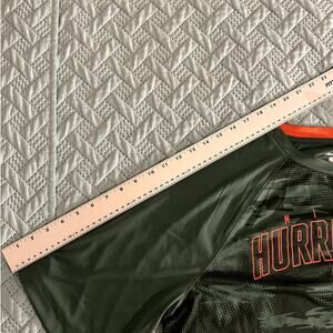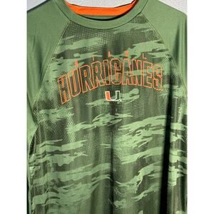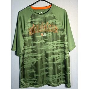 MIAMI HURRICANES MENS ATHLETIC T-SHIRT GREEN AND ORANGE SIZE XL. BREATHABLE MATERIAL SO GIVES A COOLING EFFECT WHICH HELPS WHEN IT'S REALLY HOT. SHIRT LOOKS AMAZING AND IS IN GREAT CONDITION. CELEBRATE CANES PRIDE WITH THIS EYE POPPER OF A SHIRT.