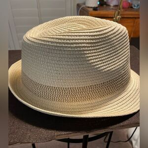 - FANCET PACKABLE FEDORA PANAMA BEACH HAT LIGHT TAN SIZE MEDUIM