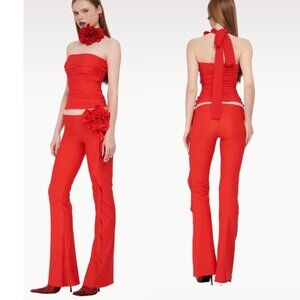 FANCI CLUB Red Stretch 'The Gun' Rosette Pants