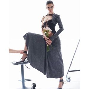 FANCI CLUB Studded Trim Low Waist Charcoal Grey Withering Betrayal Maxi Skirt S
