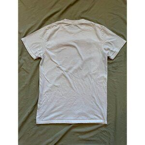 Trip out in style ☠️🌈 This soft white tee features a psychedelic graphic of a dancing skeleton under cosmic skies—planets, mushrooms, and all. A little surreal, a little existential, and a lot of fun. Super comfy and barely worn.