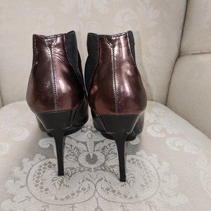Elastic front cross-over makes it the most comfortable high heel bootie to wear.
