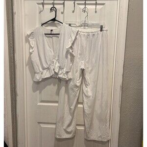 FANCYINN Womens Large Outfit Crop Top Side Slit Wide Leg Pants Set Beach