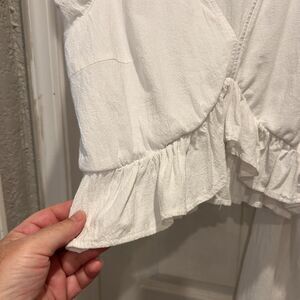 Great pre owned condition. No flaws. Pants and top set. Pants are lined with shorts. Ends above the leg slits.